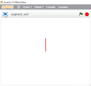 | Motif | Voici un bloc et un programme pour tracer un segment vertical en Scratch |