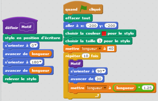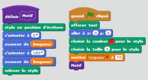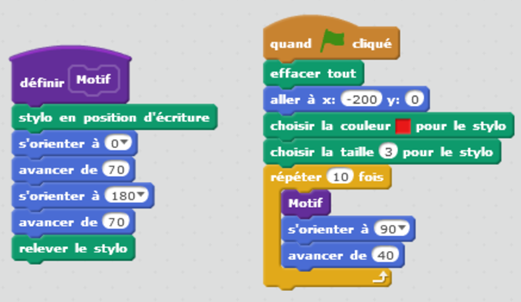 | Motif | Voici un bloc et un programme pour tracer ce motif en Scratch |